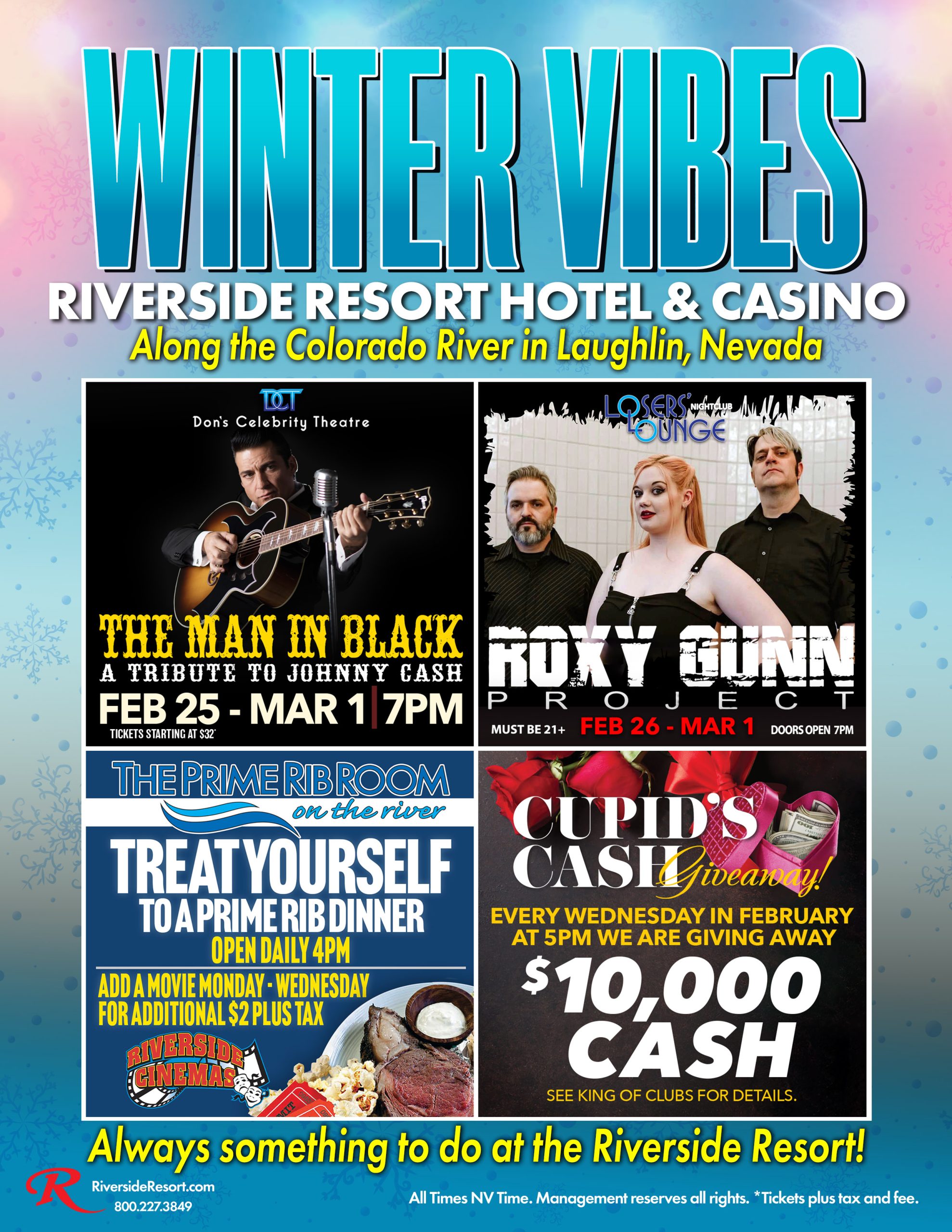 Experience endless entertainment at Don’s Celebrity Theatre, dance the night away at Losers’ Lounge or The Dance Club, catch a movie at Riverside Cinemas, bowl at Riverside Lanes, explore Don Laughlin’s Auto Museum, unwind by our two stunning pools, take a cruise on the USS Riverside, enjoy two Arcade Rooms, engage in Laser Tag, and so much more!